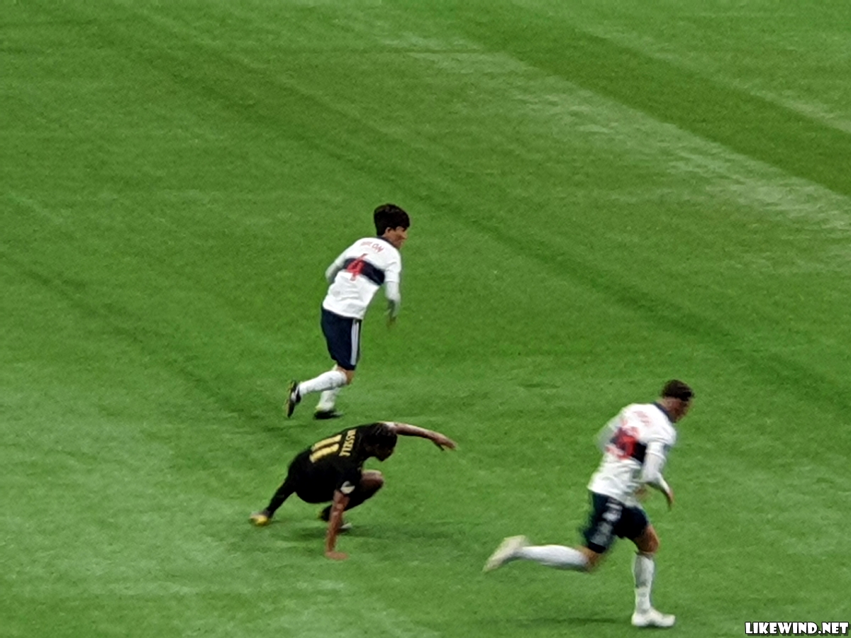 전반은 나름 대등하게 경기를 풀어가고 있었는지 역습에 역습이 이어졌다. 그러다 전반 27분, 튕겨져 나온 공을 황인범이 발리슛으로 때려 골을 넣었다! 첫 골이 터졌고, 그 주인공이 황인범이라 너무 놀랐다. 사실 밴쿠버 첫 직관에 황인범의 골을 넣을 거라 생각지도 못했다. 게다가 황인범은 약간 처져있는 수비적인 위치에 있었으니 더 그렇게 생각했는지 모르겠다.