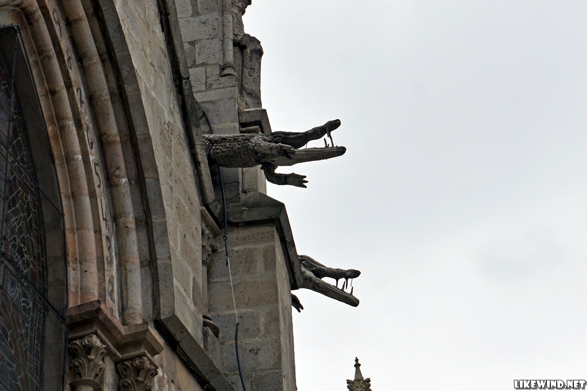 특이하게도 성당 외벽에 악어나 재규어(?)와 같은 동물 석상이 있다.