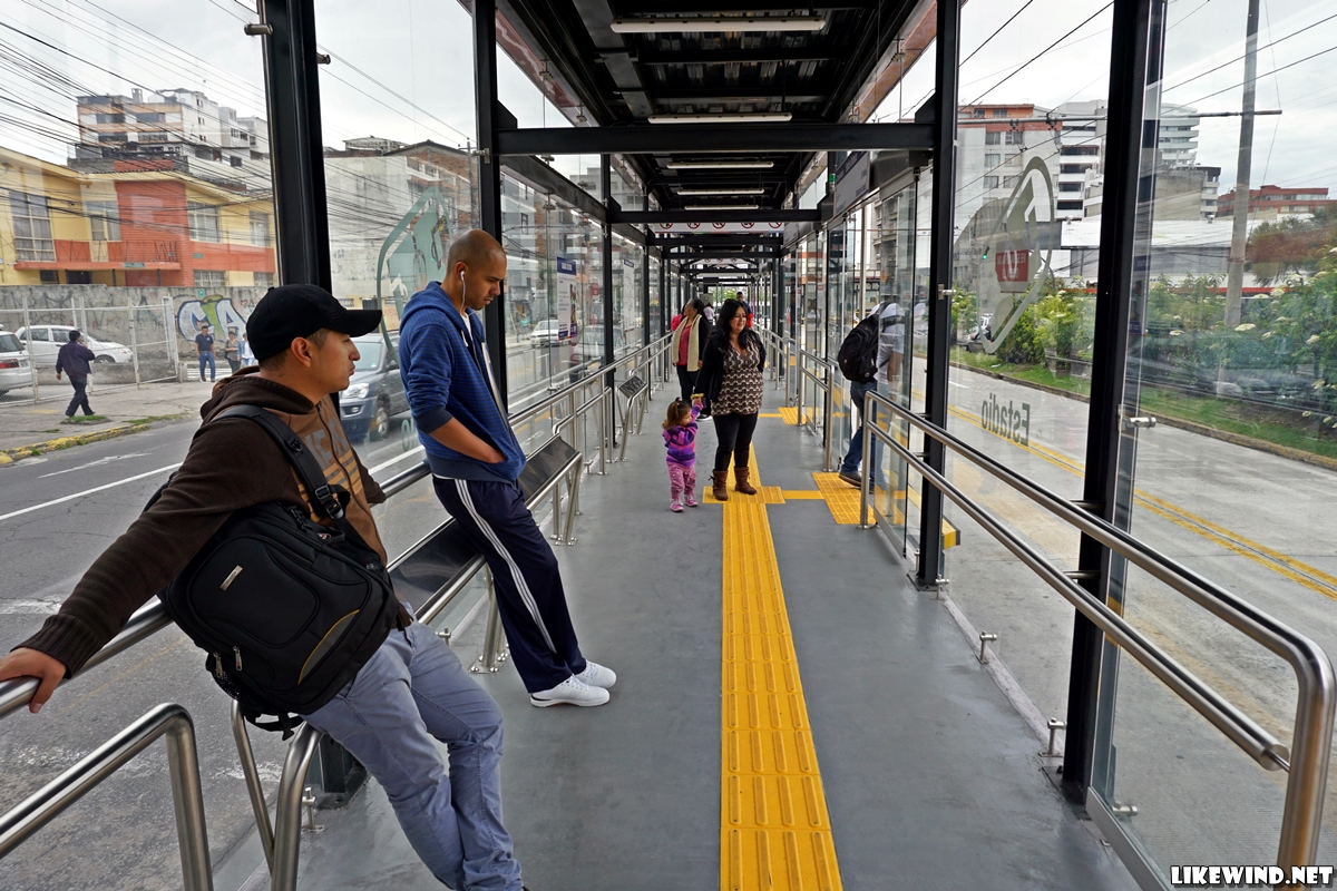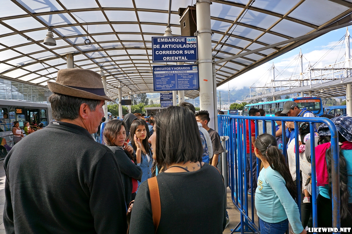 키토는 북쪽과 남쪽에 큰 버스터미널이 있다. 바뇨스에서 출발한 버스는 남쪽에 있는 터미널에서 내려다 줬는데 사람들 사이로 배낭을 메고 걸으니 정신이 하나도 없었다. 사람들에게 물어 겨우 마리스칼 수크레(Mariscal Sucre)로 가는 버스에 오를 수 있었다. 일반 버스를 2개 연결한 큰 버스였지만 앉을자리는 없었다.