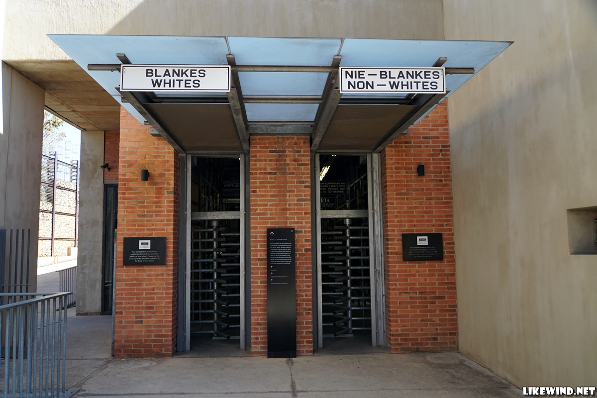 남아공 여행에서 가장 관심을 가졌고 꼭 가봐야 한다고 생각했던 곳이 아파르트헤이트 박물관(Apartheid Museum)이었다. 인종차별이 아닌 인종분리를 법제화 한 아파르트헤이트는 홈랜드 혹은 반투스탄이라고 불리는 흑인들만 모아 놓은 구역을 아예 나라로 독립시켰고, 흑인을 남아공 국민으로 인정하지 않았다. 흑인과 백인의 장소가 철저히 분리되었으며 심지어 길을 건너기 위한 육교라고 해도 흑인과 백인이 걷는 구역을 나누었다. 심지어 국제사회에서 남아공은 인종차별 국가로 낙인 돼 IOC에서 퇴출, 올림픽도 출전할 수 없었다. 1994년 넬슨 만델라가 대통령에 당선되면서 비로소 아파르트헤이트가 철폐됐다.