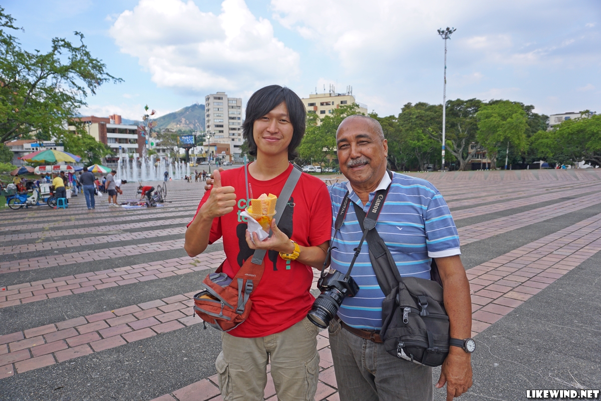 빙수를 하나 들고 있을 때 공원에서 카메라를 들고 사진을 찍어주던 아저씨가 다가와 어느 나라에서 왔냐고 물었다. "꼬레아 델 수르"라고 말하니 껄껄 웃으며 콜롬비아에 와서 너무 반갑다며 손을 덥석 잡았다. 그리고는 사진도 같이 찍자고 했다. 콜롬비아 첫 느낌이 무척 좋았다.