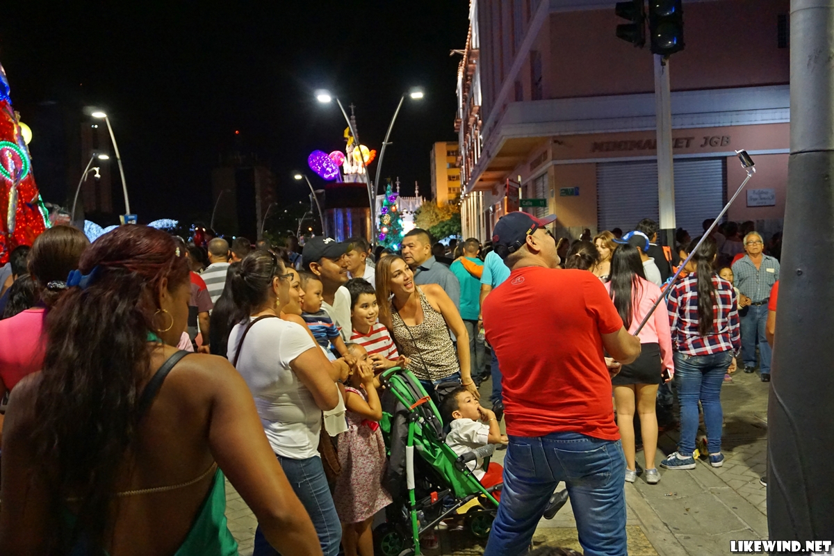 칼리 시청으로 향하는 길에는 화려한 조명으로 가득했고, 구경하려는 사람들로 빼곡했다.
